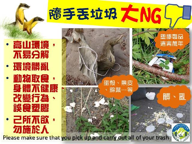 愛山、淨(敬)山,垃圾隨手帶下山