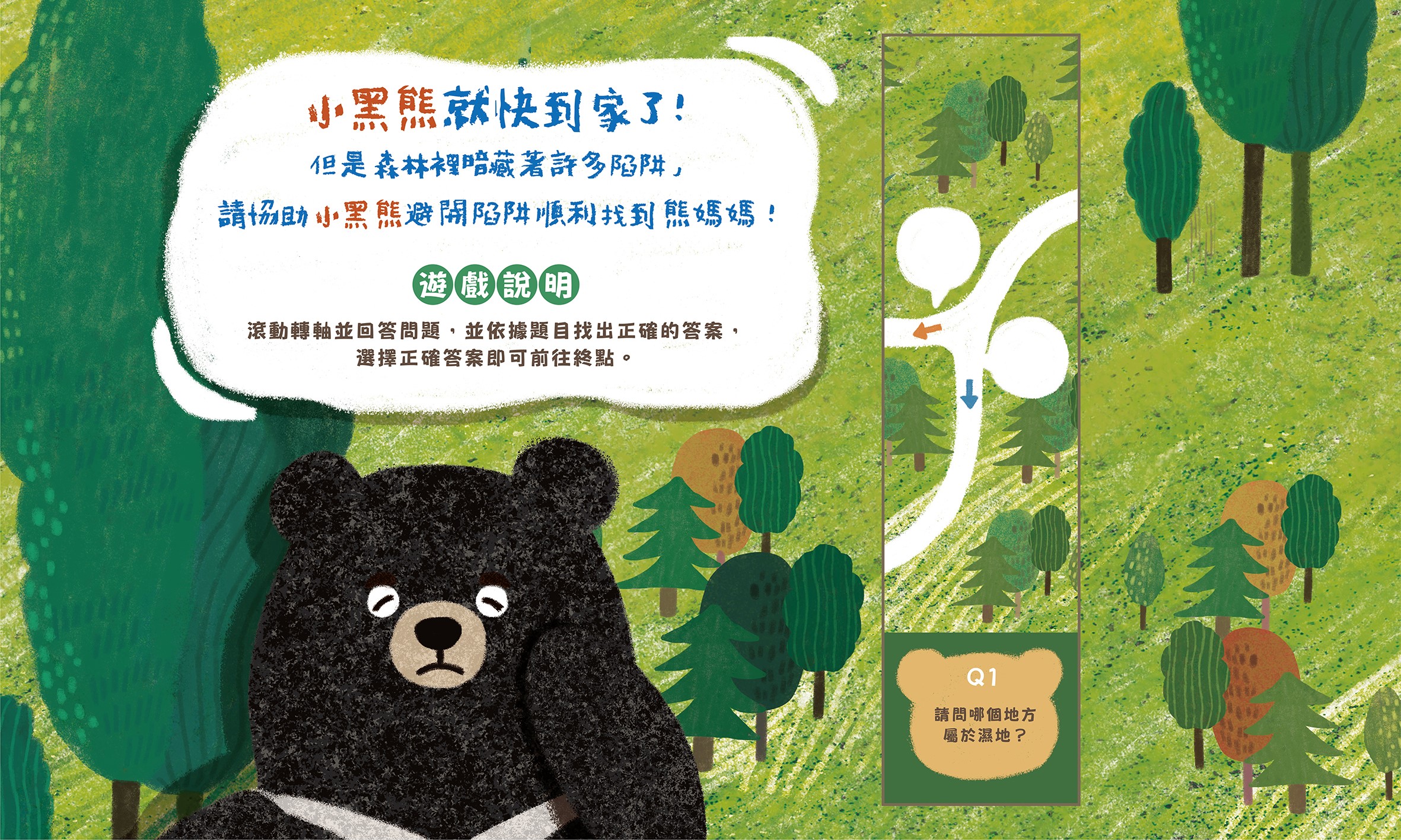 為行銷兩處豐美多樣性之原住民文化及生態資源與特色,提供更多國人欣賞及體驗國家公園美學與發揮其更大之效益,本繪本特展除繪本展面外,並有黑熊食性、困境等互動遊戲。透過結合玉管處及台江處的人文歷史及生態保育,讓民眾了解國家公園內豐富多元的資源,並希望藉由寓教於樂、深入淺出的方式,傳達國家公園維護歷史文化及自然保育理念與環境永續的觀念。