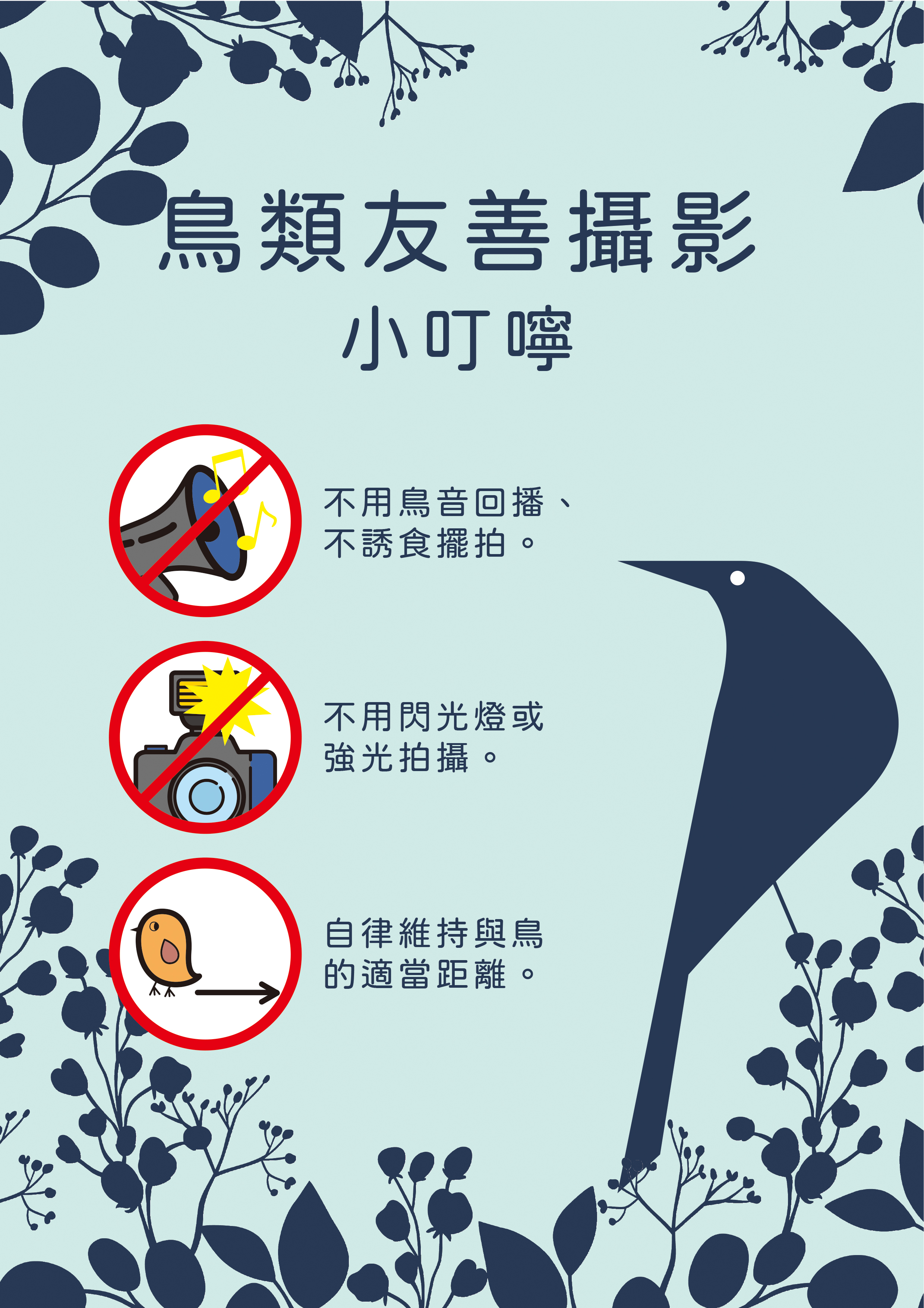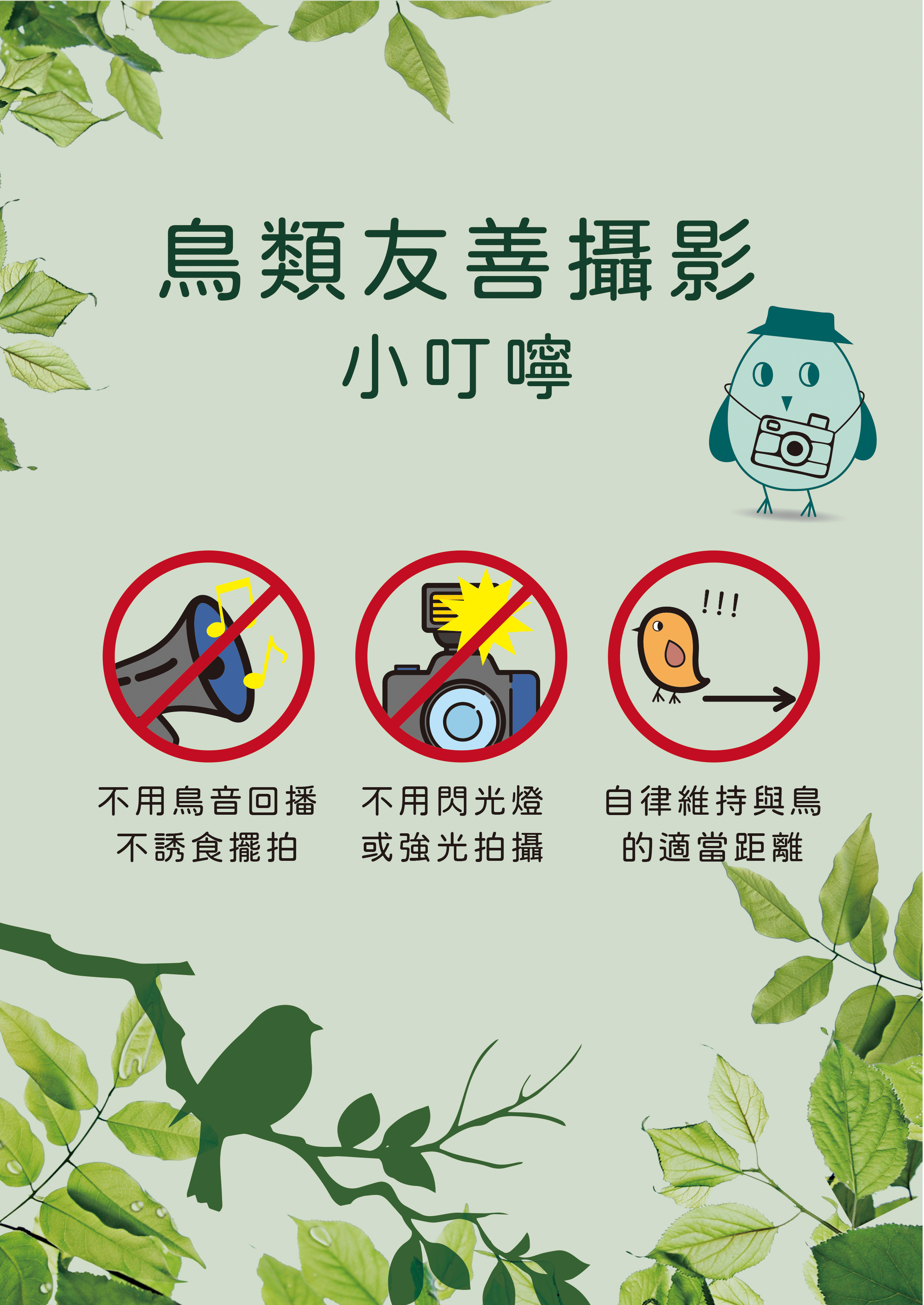 友善的圖文鼓勵著友善的鳥類攝影行為,讓我們一起說一起做~ 歡迎轉貼,並請加註「本文宣圖稿經臺北市動物保護處授權」