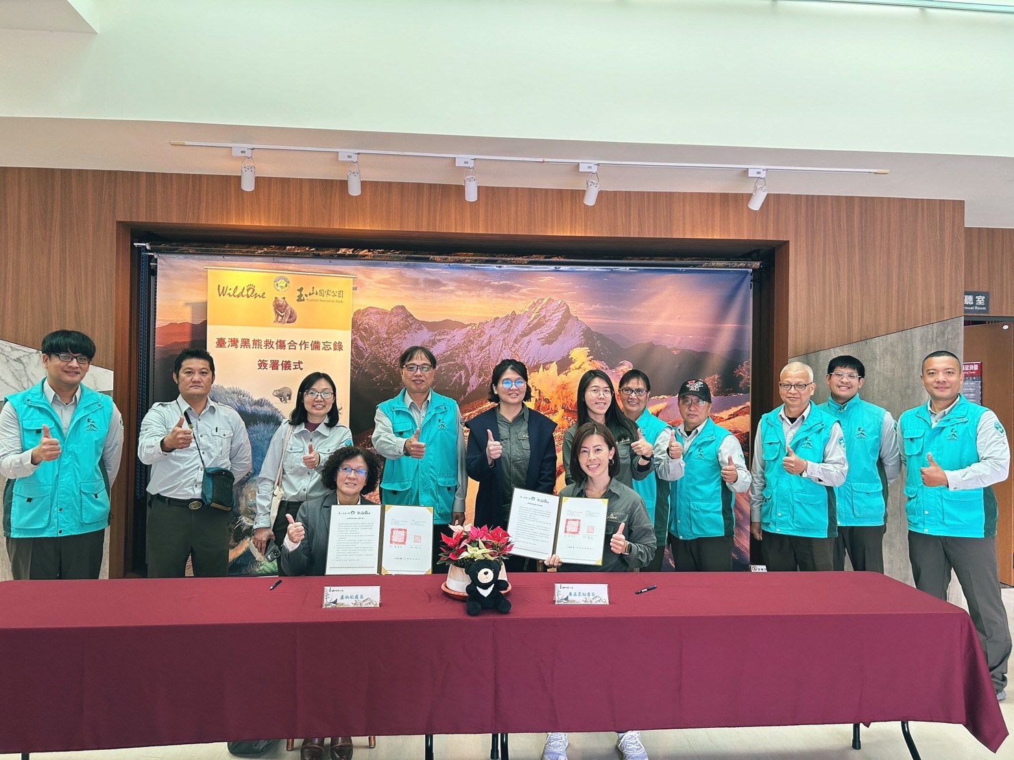 與「社團法人臺灣野灣野生動物保育協會」簽署黑熊救傷備忘錄,健全東部園區之黑熊救傷機制