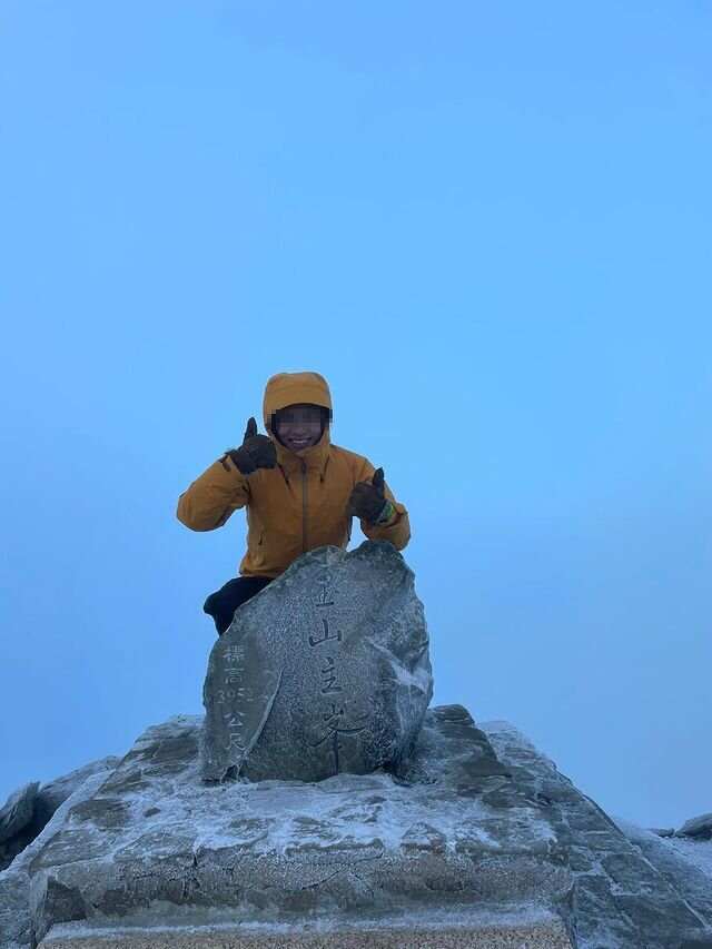玉山主峰頂至日出後仍多有結霜與殘冰,建議山友等待白天氣溫升高、殘冰較少後再登頂。(圖片來源:李哲逸 提供)