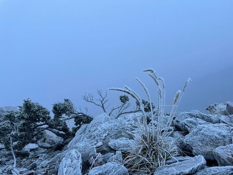 玉山主、群峰線步道目前深夜至清晨路面有結霜、結冰及霧淞,山友前往時需格外小心。(圖片來源:李哲逸 提供)