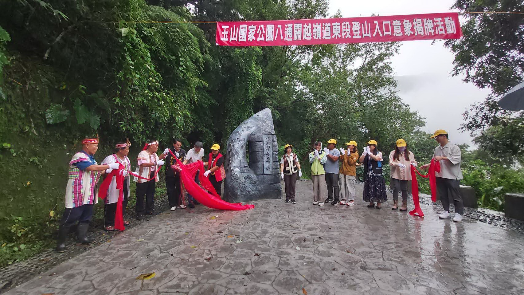 內政部國家公園署玉山國家公園管理處(以下簡稱玉管處)。今年新建的八通關越嶺道東段登山入口意象作品,已於10月25日上午11點整,假八通關越嶺道東段山風登山口舉辦落成啟用。八通關越嶺線原為日治時代「八通關越道路」,曾為日人實行理蕃政策及連絡臺灣東、西部的交通衢道,並於1921年闢建完成。目前以大水窟為中心,分為東、西兩段,橫貫玉山國家公園園區,登山朋友可由南投縣東埔登山口橫越中央山脈至花蓮山風登山口,亦可反向攀登進出,全程約96公里。此外可由八通關越嶺道攀向中央山脈其他登山路線,另由八通關草原處亦可借道荖濃溪營地通向玉山主峰。是玉山國家公園區內知名又重要的登山路線,每年亦吸引許多國際旅客來訪。