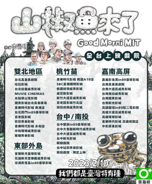 麥覺明導演透過電影鏡頭走入臺灣山林,歷時17年用文字和影像記錄投入山椒魚研究的研究人員,他們攀越臺灣的山林水澗,探索神秘的山椒魚,紀錄更多有關於山椒魚的故事及歷程,2023年2月10日 «山椒魚來了»上映,歡迎大家至各大電影院觀賞,影片將呈現包括艱辛的野外調查、研究室中資料分析豐富的研究資訊。一起更了解山中的微笑精靈-山椒魚及研究交織人物刻畫及故事。 當您了解在那些不起眼的角落,都可能有各式各樣的野生動物生活著,下次造訪高山型國家公園時,可以愛山敬山,並將垃圾帶下山,共同維護生態環境,不隨意擾動山椒魚生活棲地,讓山椒魚能長久舒適地生活在這片土地之中。