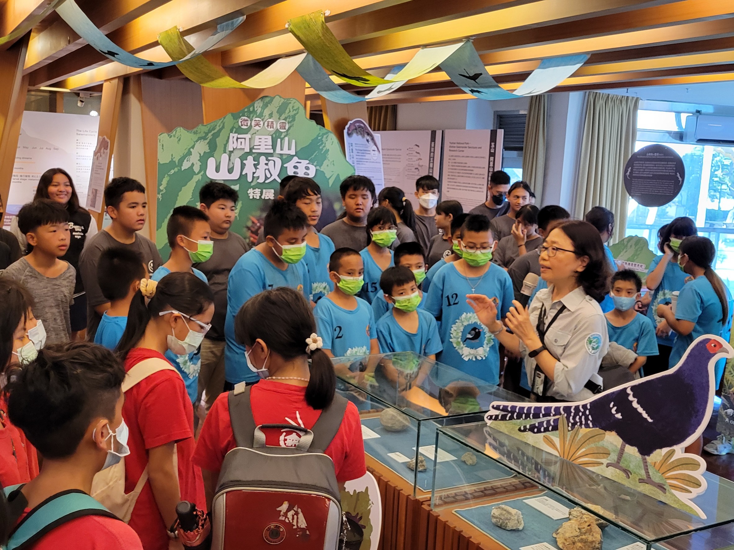 玉管處盧淑妃處長表示,為向更多國人介紹臺灣的山椒魚保育,今(113)年初參與臺北市立動物園與內政部國家公園署、農業部林業及自然保育署等單位合作於臺北市立動物園展出之「走進高山島嶼-探索山椒魚」特展,並為服務中部民眾,玉管處運用「探索山椒魚」特展納入玉山國家公園阿里山山椒魚保育研究成果,推出「微笑精靈~阿里山山椒魚」特展,內容從外部形質認識何為山椒魚,到發現及演化史,及阿里山山椒魚生活史,以及遭遇的危機與保育永續議題等。